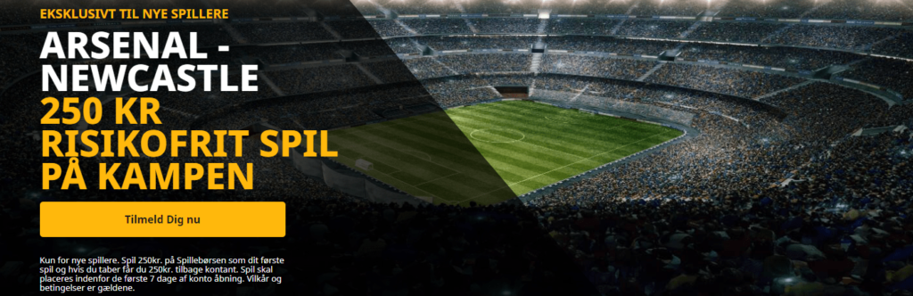 Spil 250 kr. på Arsenal – Newcastle kampen. Taber du dit væddemål, refunderer Betfair pengene til din konto igen.